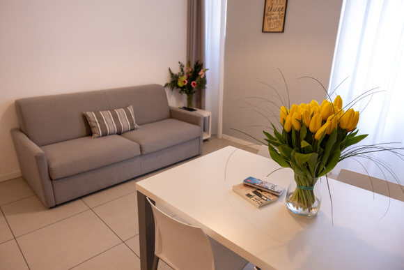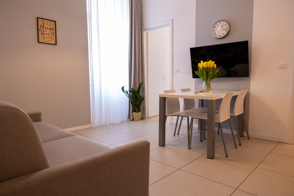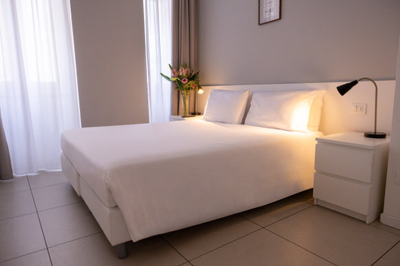 Due letti matrimoniali o quattro singoli + 1 letto pieghevole opzionale per bambino massimo 6 anni.
